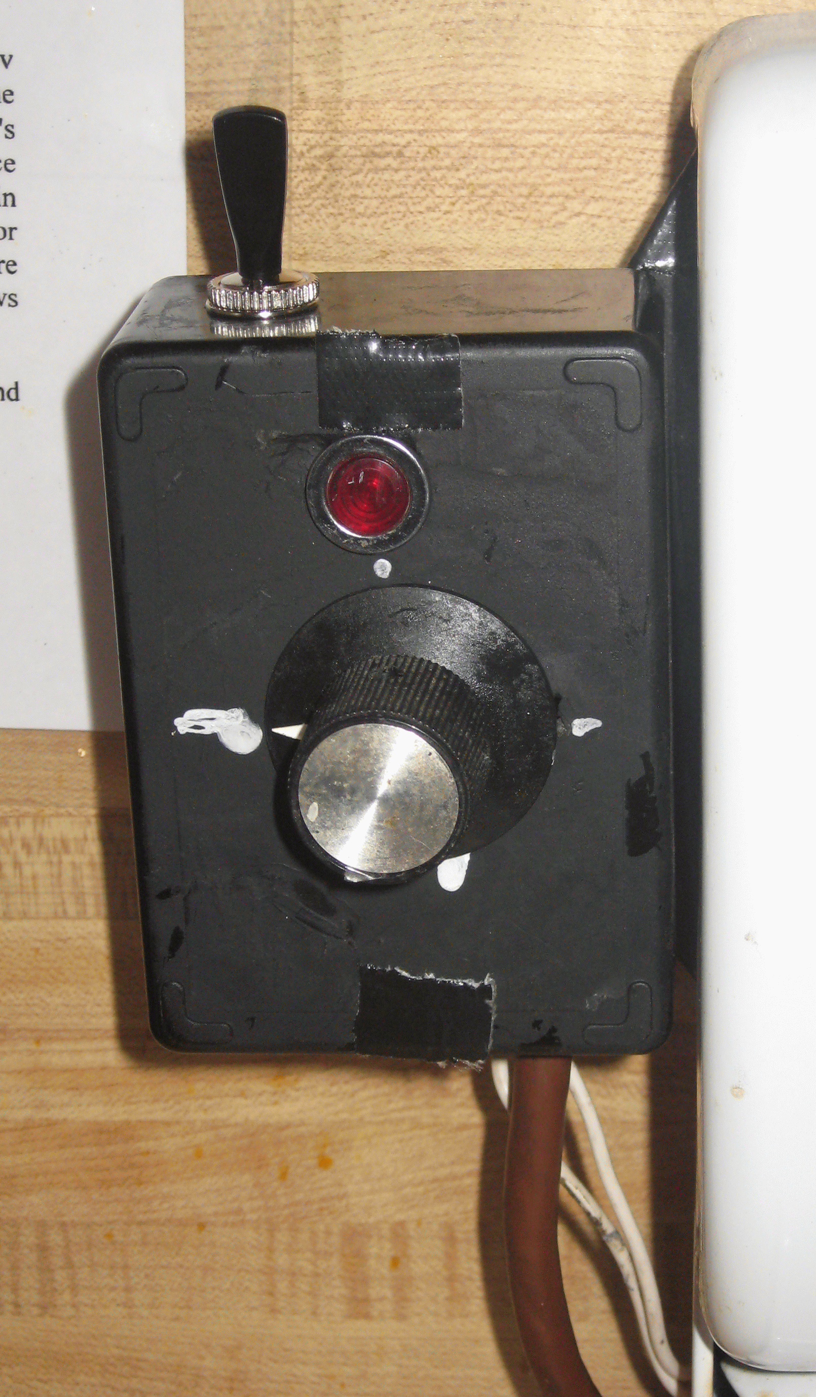 Deployed in a box with a double switch that enables both the indicator light and the potentiometer, or disconnects the light and shunts the potentiometer to zro ohms for regular factory weekday operation